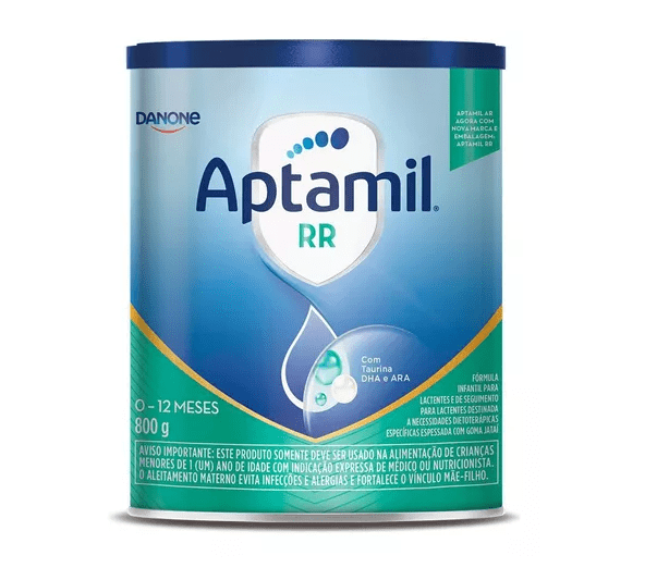 Aptamil RR é uma fórmula infantil para lactentes de 0 a 12 meses de vida, destinada a necessidades dietoterápicas específicas espessada com goma jataí, contém DHA, ARA e Taurina.