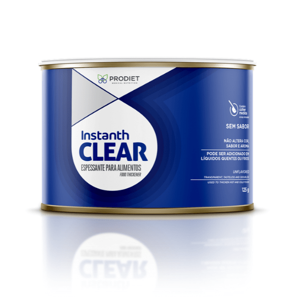 Instanth Clear é um espessante instantâneo de alimentos e bebidas, frias ou quentes. Permite as consistências nectar, mel ou pudim de acordo com a necessidade do paciente e dosagem indicada. Isento de sacarose e glúten. Embalagem: lata de 125g.