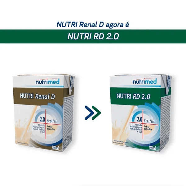 O Nutri RD 2.0 é uma fórmula modificada desenvolvida para nutrição enteral, podendo também ser consumida por via oral. É recomendada para pacientes em tratamento dialítico com insuficiência renal aguda ou crônica, que necessitam de restrições de eletrólitos e fluidos. Pronto para consumo, possui alta densidade energética, fornecendo 2,0 kcal/ml, sendo considerado hipercalórico. Disponível no sabor baunilha, é isento de fibras.